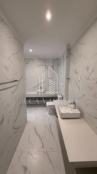 - Acabamentos: Piso de madeira, rebaixamento em gesso, e armários modulados.