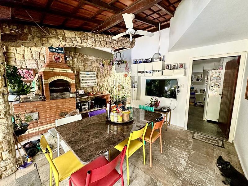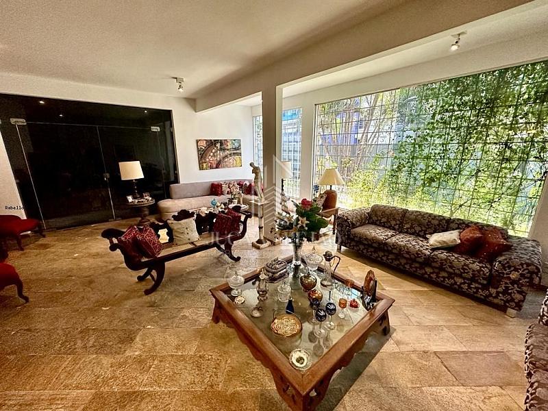 Pavimento térreo - Ampla sala em L com três ambientes, suítes, cozinha ampla, área de serviço imensa e separada da casa, com área externa com uma big piscina, área gourmet completa, duas churrasqueiras, sauna, área coberta e descoberta. E ainda, um espaço para hóspede em separado com cozinha americana e uma suíte. Área externa arborizada e com pomar. Sol da manhã, 3 vagas de garagem cobertas e com espaço para uma quarta vaga.