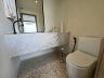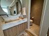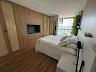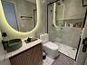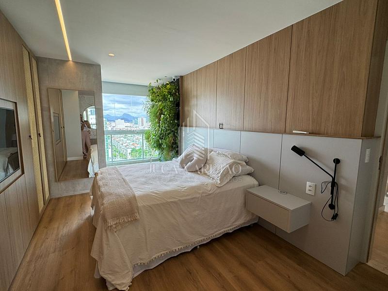 A suíte é destacada pela área de banho, que conta com jardim vertical e paredes de vidro, proporcionando uma vista panorâmica enquanto você desfruta de um banho.